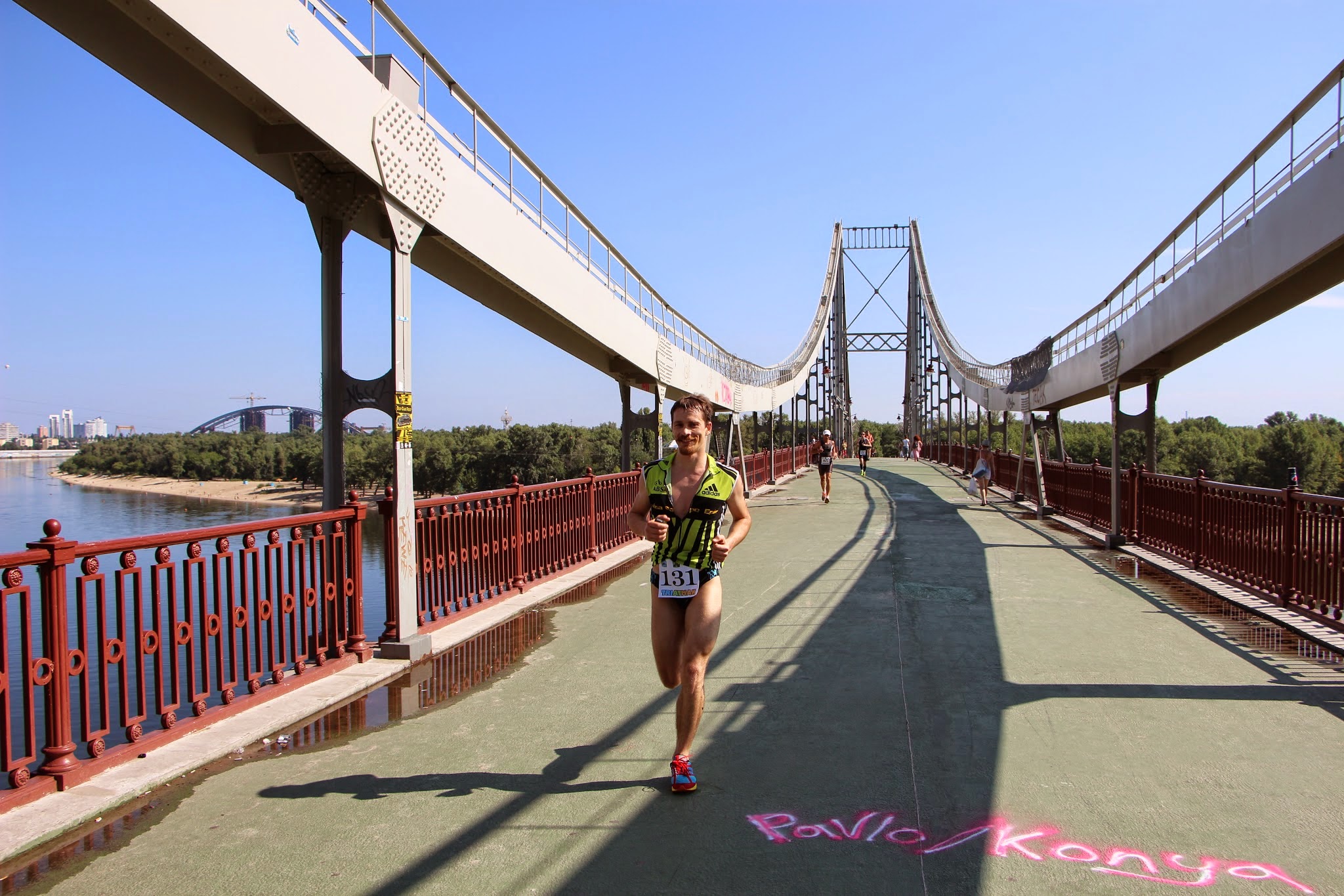 Обходят меня, обхожу я. В горку пешеходного моста побежалось мне на удивление очень даже неплохо. Тех, кто бежали рядом, обходил, а кто меня обгоняли на ровном – не отпускал. Приятно! А вниз бежать быстро, но больно! каждый шаг на всю стопу - как палкой по суставам, а бежать на одних носках не получается – ноги не свежие. Тут не до правильной техники…