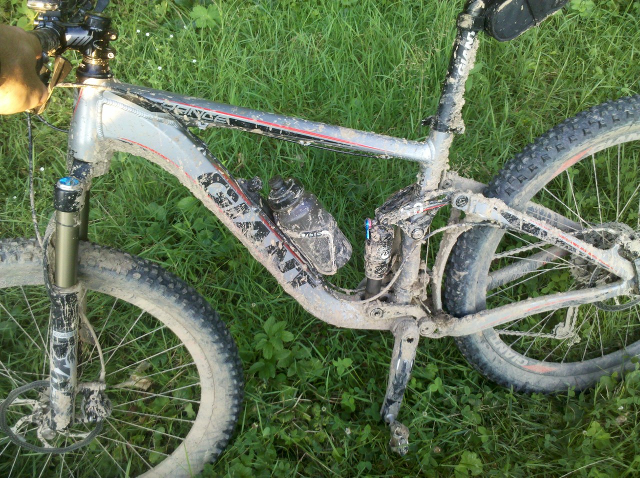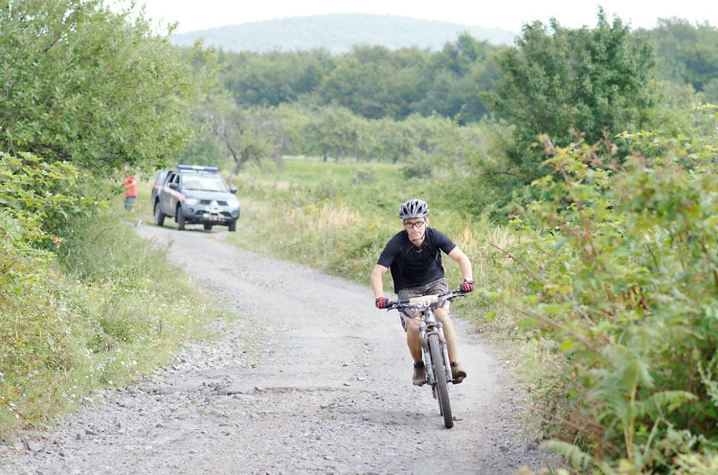 Рано добряче переївся, благо старт перенесли на 30 хв. Рватись з старту нікуди не хотів тому стартую останнім, марафон довгий розставить всіх по місцях. Хоча бажання не бути останнім заставляє добре вливатись в роботу. Ось і почались торчки, спочатку пробував вкручувати але каміня мокрі заставляло часто злазити з ровера, вирішив пішкодралити як і всі. Кінець підйому щось прийшов неочікувано бистро почались спуски, де я з новим ентузіазмом почав валити. Верхній серпантин був супер! Навіть на торчок, що попався вилетів без проблем, потім почалось цікавіше трохи глини з камінням, де я набираю хорошу швидкість і обхожу пару учасників які стоять і не розуміють як тут їхати. Каміння переростає в глину ні то не глина то гавно, але стараюсь триматись між коліями і як не дивно мені це вдається, правда не довго, потрохи горб між коліями почав стрімко звужуватись, майже до 0, а колії глибшати. В одному з місць було просто неможливо втриматись на коні і я ніби й встиг притормозити, але ногу де поставити не було, точніше найшлось але капця я свого не бачив тай рулем забився так, що тормозна ручка теж сховалась десь далеко в жижі. Так як далі варінтів їзди не бачу вилажу на верх і пробую в обхід. В деяких місцях навіть їду але страшно патиків там маса і кожен хоче попасти то в перекидку то в колесо. Нарещі трохи болото обійшов і через декілька метрів можна було їхати, ось і 1 КП. Там добре розкладаюсь і починаю чистити ланц, хоч трохи, бо розумію що з тим я далеко не доїду. За цей час мене обігнало чоловік з 10. Я всеодно не спіша набираю ізотоніка і шумлю далі. Ізотонік мене не попер, засолодкий мені, ну хіба на КП тільки пити а так ліпше воду везти. Підйом був те що треба, градієнт норм і серпантини сподобались. Там вже декількох набрав і в свому темпі вкручував далі невеликі спуски радувалали, правда не довго, почався ще один підйом хоча ні з вигляду ніби й не підйом, а тягучка і тут я вже потрохи здаю. Там де норм було крутити на другій зірці я валю на першій. Там мене вже багато з Меги набирають. Спуск був хоч і по дорозі але цікавий багато поворотів, шутрована дорога і де-не-де прийшлось добре так вкладатись щоб не вилетіти, один мене обігнав правда не на довго, через один поворот він вже був в кущах.