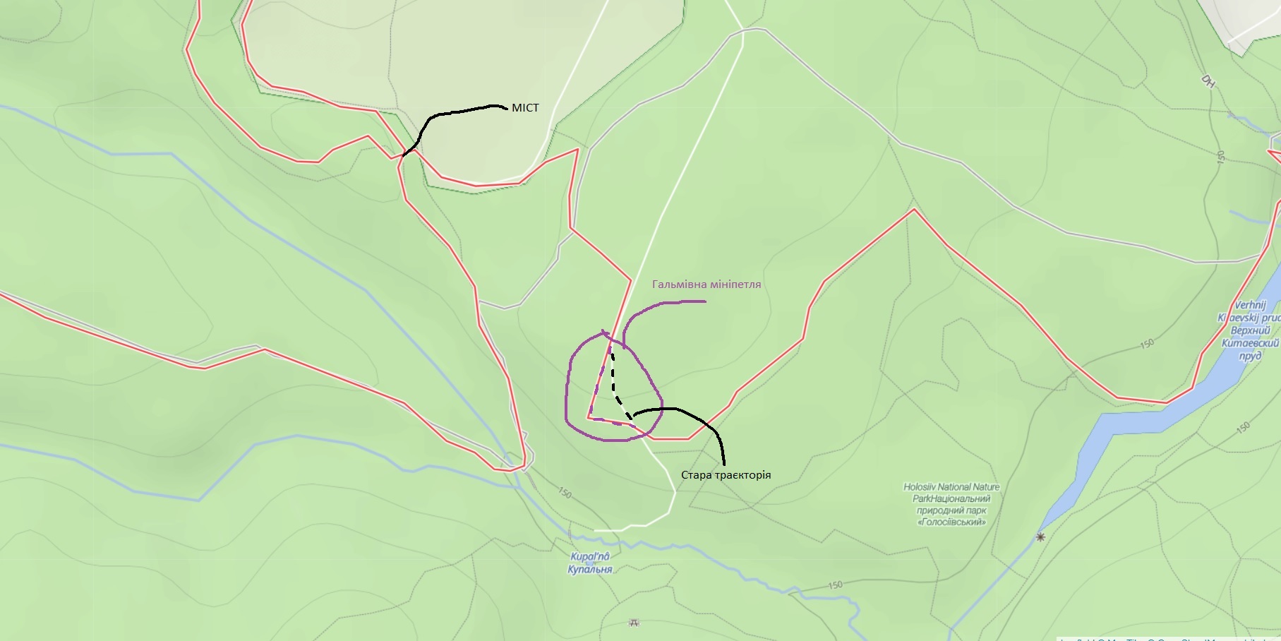 2. Додано гальмівну мініпетлю (вправо) на швидкому спуску в сторону купелі перед поворотом на ліво (на сінгл), приблизно на 3+ км треку.